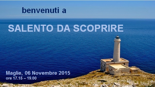presentano l’evento “Salento Da Scoprire” che si terrà Venerdì 06 Novembre 2015 dalle ore 17.15 alle ore 19.00 presso il Ristorante Corte Degli Archi in via Garibaldi n. 23 a Maglie.