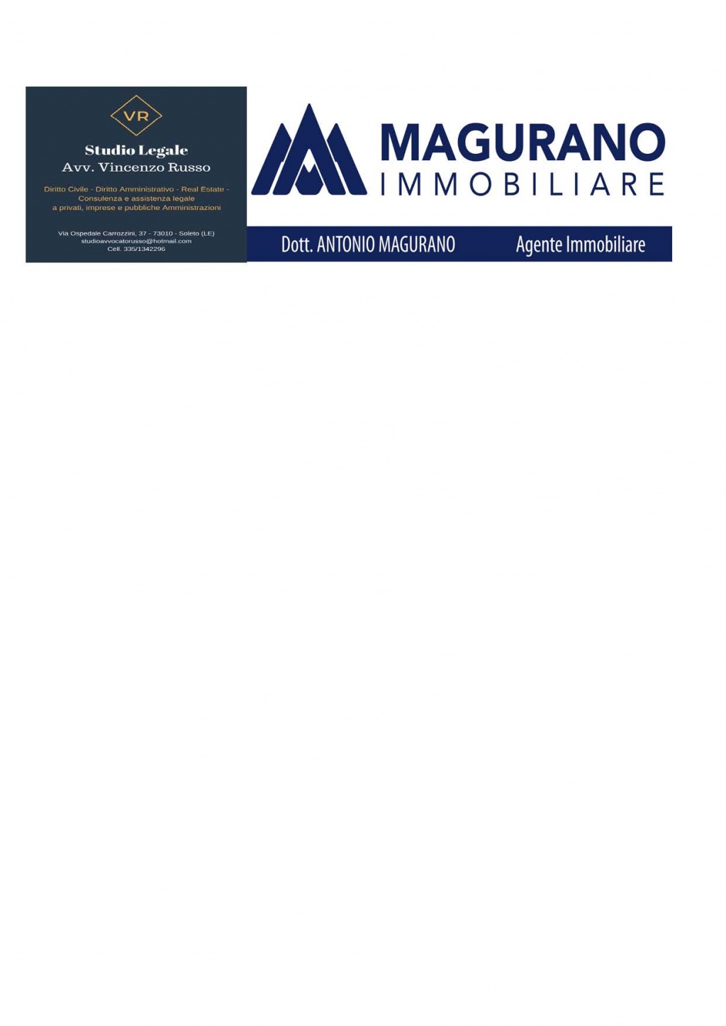 Lo Studio Legale Avv. Vincenzo Russo e l’agenzia Magurano Immobiliare del dott. Antonio Magurano, hanno stretto un accordo di collaborazione professionale per il settore del mercato e della proprietà immobiliare. Oggi, tale settore richiede una conoscenza ed una specializzazione sempre maggiore, al fine di far fronte ad esigenze e problematiche diverse, spesso anche molto complesse, da affrontare con competenze tecniche trasversali, concernenti i più svariati settori giuridici: dal diritto amministrativo (per quanto concerne le problematiche relative all’urbanistica, al paesaggio, all’edilizia, etc.) al diritto privato (contrattualistica, forme di acquisto della proprietà, analisi dei mutui, sfratti, etc.) e tal volta anche al diritto penale (per esempio nei casi di abusivismo e non solo). La nascente sinergia tra le due realtà professionali consentirà quindi una maggiore tutela dei diritti e degli interessi dei proprietari immobiliari, fornendo a questi ultimi una vasta gamma di servizi finalizzati alla gestione e all’ottimizzazione del proprio patrimonio.